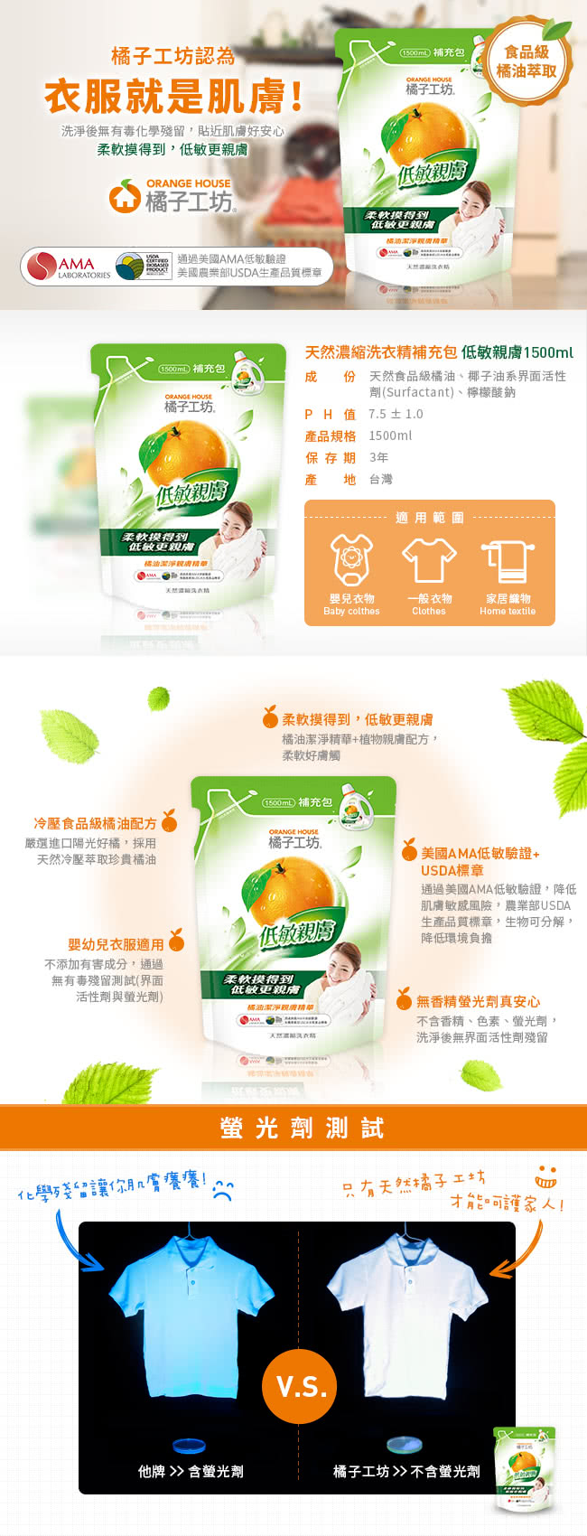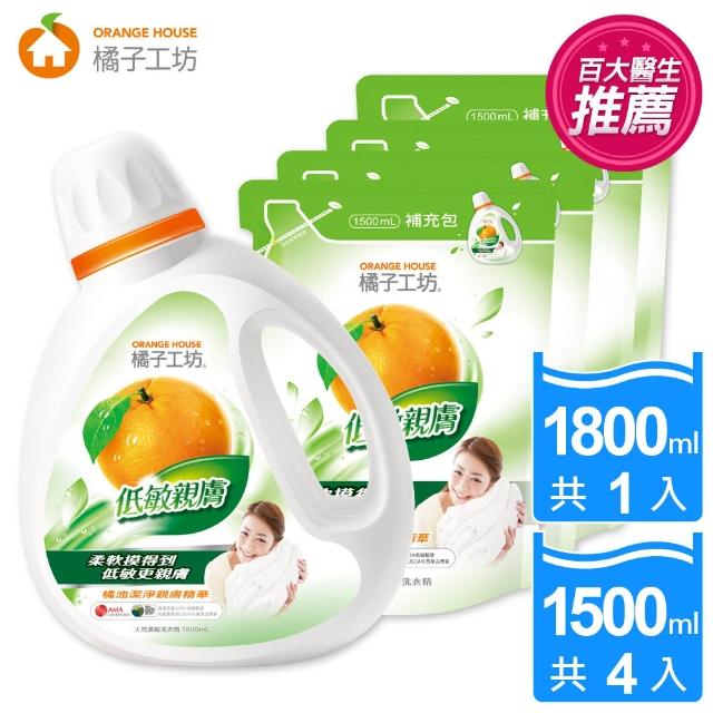 就是它 ~~【橘子工坊】天然濃縮洗衣精-低敏親膚 1+4組(1800mlx1瓶+1500mlx4包)其實我的路線比較奇怪,並不會推銷多好用多好洗的款。 因為我什麼都能過敏的關係(哈哈),所以選擇上我很需要特別注意。