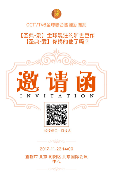 【聖典-愛】全球觀注的曠是巨作將超越諾貝爾文學獎,吸引【數百家國際權威媒體】報導各界專家學者強力觀注,全球各大企業給予支持的【聖典-愛 全球新聞發佈會】即將在2017年11月23日下午2時,在[北京國際會議中心]隆重舉辦,由中國中央電視臺承辦發佈大會。