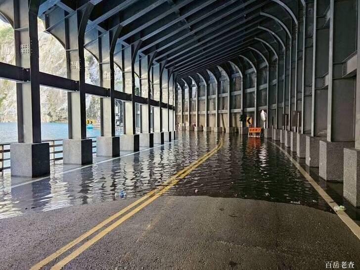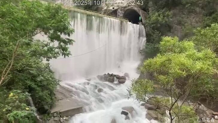 圖片引自2025.10.18.中央社(圖/林保署花蓮分暑提供),是立霧溪燕子口堰塞湖17日的高水位情況。林保署花蓮分署表示,花蓮立霧溪堰塞湖持續監測,湖水已從台8線靳珩隧道東口溢流,並穩定回流至立霧溪主河道,雖水量略增,但整體流勢平穩,堰塞湖對於下游風險已降低。