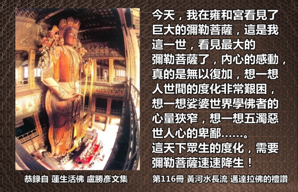 我們身邊所有的一切事情, 其實都是顯現給我們學習的, 而不是顯現給我們增加我執的。 恭錄自【蓮生活佛 盧勝彥文集】第166冊【神行記】《救度自盡者》 【蓮生活佛盧勝彥著作】 h...