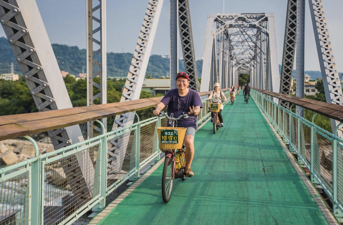 隨後前往后豐鐵馬道,租一台電動自行車,輕鬆橫跨宏偉的「花樑鋼橋」。在大