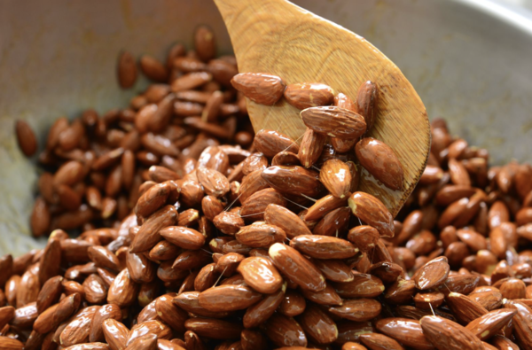 堅果先用 150°C 預烤 10 分鐘「回香」並逼出水氣。一定要放涼後再拌入焦糖,這能確保香氣乾淨、口感持久酥脆。