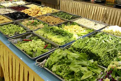 刚到新梅园圆通素食城(深圳店)时,感觉很是惊讶。一是惊讶其4000 m2的超大营业面积,这个规模在素食自助餐厅中极为罕见;二是惊讶其自助餐30元网订消费价,居然可以吃到约一百五十种炒菜、凉菜、中西点、养生汤、新鲜水果……(二楼的自助火锅网订消费价也仅38元。)