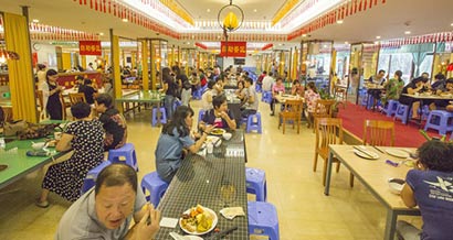 曾是深圳海鲜酒楼翘楚的“新梅园”如今成为大型素食自助餐厅(图片来源:东林寺)