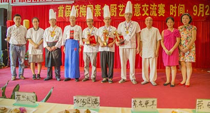 首期新梅园素食厨艺培训班创意菜大赛获奖学员(图片来源:东林寺)