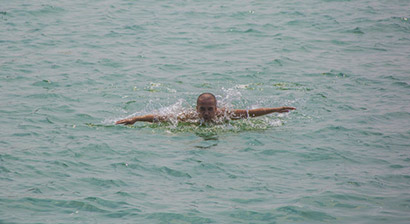 于从小生长在海边的林穗来,游泳是最好的减压方法。(图片来源:东林寺)