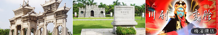 | 梅溪牌坊: 中國首位華僑百萬富翁陳芳,在梅溪村是個傳奇人物,不僅僅因為光緒皇帝賜了三座牌坊,也不僅因為他是第一個成為夏威夷領事,他之所以能深得兩國政府的重用,以及鄉里的愛戴,乃是因為他做了許多善事。最吸引遊人目光的梅溪石牌坊現存三座,分別建於清光緒12年和清光緒17年,前者高12公尺、寬12.2公尺,是當年珠海發生水災,陳芳捐了白銀三千兩回國賑災,光緒帝深受感動而賜建此牌坊;後者高10.1公尺、寬9公尺,寫著「急公好義」四個字,是陳芳長孫請朝廷賜建給其父陳龍的,牌坊都是以花崗岩建造,加上精緻的雕花,被認為是石雕藝術的精品。 |