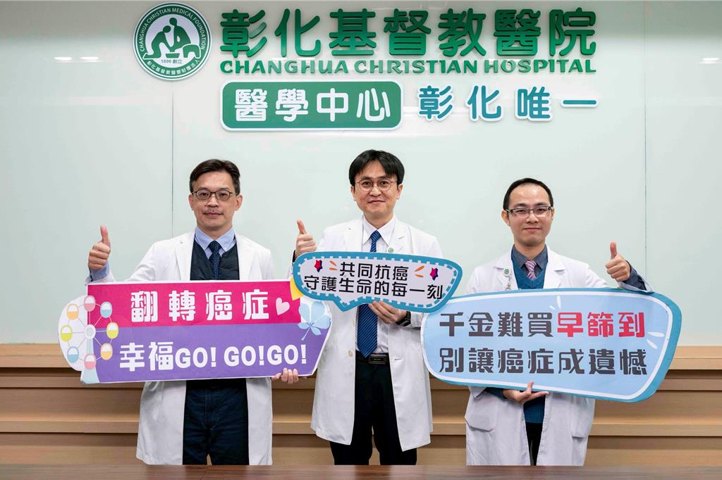 彰基外科部主任王秉彥(左起)、胸腔內科主任林聖皓、胸腔檢查治療中心主任詹博強,合力推廣肺癌一站式精準醫療。(彰基醫院提供/葉靜美彰化傳真)