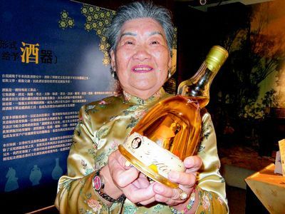 「孫子回家時,會吵著說,奶奶,我要看音樂酒、會跳舞的酒」,80歲老奶奶孫玉箴拿出珍藏50年的音樂酒瓶,讓所有參觀眷村博物館「紀念酒瓶特展」的民眾大開眼界;此外還有做成一本憲法、大炮、女自衛隊員和鋼盔等各種形狀的酒瓶。