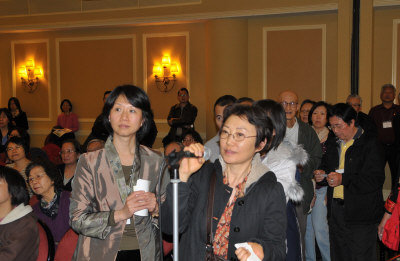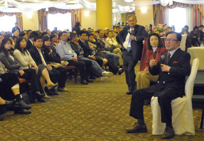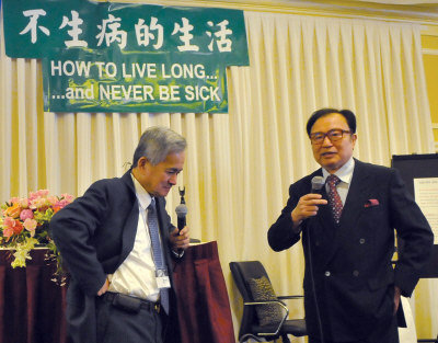 新谷弘實醫生(右)April 17日2011應邀在法拉盛為華人提供健康秘訣,由許民宗醫生(左)協助翻譯。(April 17, 2011攝影)
