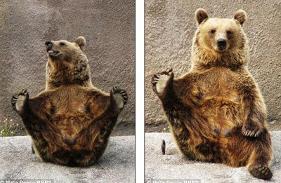 (April 20, 2011電)芬蘭艾赫泰里動物園裡出現一隻行為奇特的母棕熊,有一天牠午覺剛睡醒,整個坐在地上,用手把腳給抬了起來,感覺就像在做瑜伽伸筋骨,之後舉累了還會換邊,最後牠還將兩隻腿都抬起,做出「V」的姿勢。