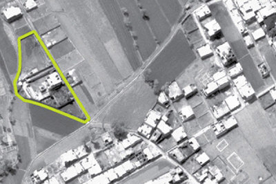 圖為賓拉丹在巴基斯坦阿伯塔巴德藏身的豪宅(綠線圍起處)空照圖。(路透)