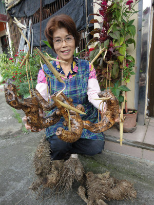 劉秀貞不是天生的竹雕好手,從零學起的她天天與挖筍工人到竹林報到,人家挖鮮甜竹筍、她挖醜竹根。根深柢固的竹根無法以挖筍工具鏟起,劉秀貞笑說,「我都帶鋸子、鋤頭跟它(竹根)拚!」