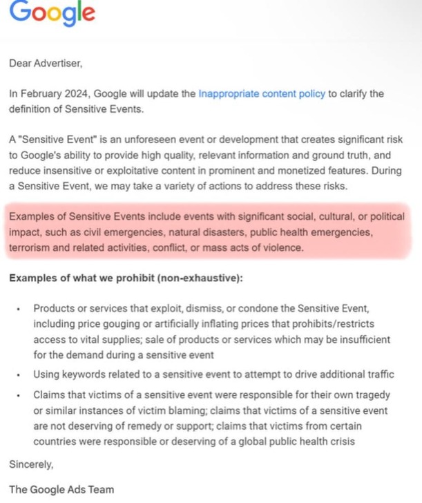 可薩暴徒的宣傳媒體谷歌則為一場「敏感事件」做準備。所謂的「敏感事件」是指「無法預見的事件或發展,對谷歌提供高質量、相關信息和現實情況的能力造成重大風險。」換句話說,預計谷歌將在某場新的工程災難後實施更多類似新冠的審查。