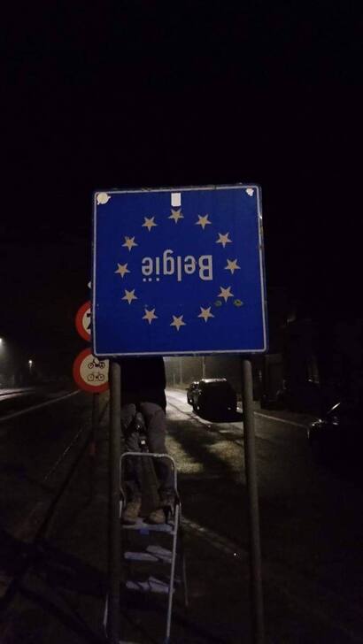 效仿法國和德國的例子,比利時農民也開始將路牌倒轉,譴責政府的農業政策和行業危機。這一運動已在佛拉芒地區蔓延。
