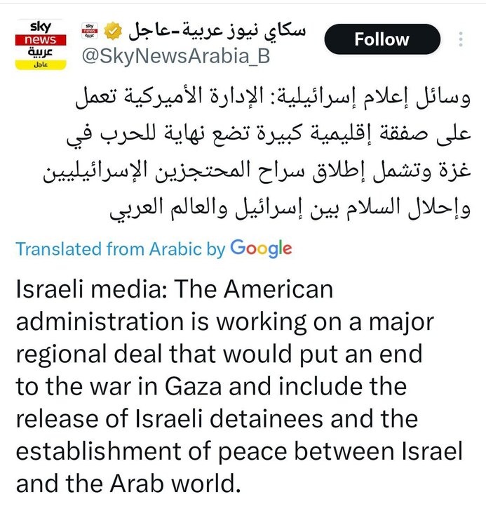 The US is now forcing Israel to make peace. Israeli media report a major regional deal that would put an end to the war in Gaza and include the release of Israeli detainees and the establishment of peace between Israel and the Arab world is in the works.