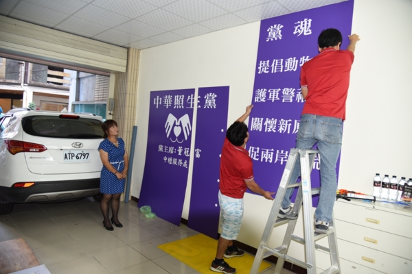然而中華照生黨董冠富先生剛接任黨主席,黨內並沒有那麼多經費,因此周小姐秉持她的公益善心,友情贊助,中華照生黨五個服務處的看板設立,董冠富黨主席表示:各界如有需要招牌、海報、宣傳單、各式印刷、大圖輸出…等等,可以直接跟中華(忠義)廣告有限公司的周玉梅小姐聯絡,聯絡電話:0908-935-948,更歡迎全省需要工作收入的弱勢朋友,加入周小姐的的團隊,也歡迎企業團體加入她們的合作協力廠商。