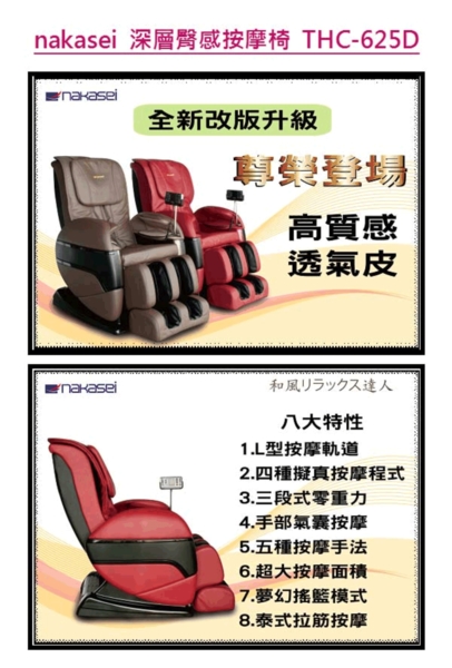 台南按摩椅專賣店美迪亞健康器材│Nakasei 樂卡適深層臀感零重力按摩椅 THC-625D【乃哥強力推薦】