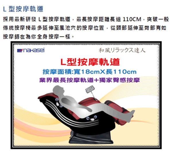 採用最新研發L行按摩軌道,市售最長按摩距離110CM,突破一般傳統按