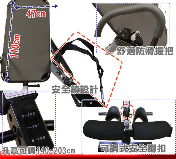 ㄇ型把手,倒立使用便利,迴轉式倒立器,採無重立安全迴旋軸,利用自身體重操控角度,