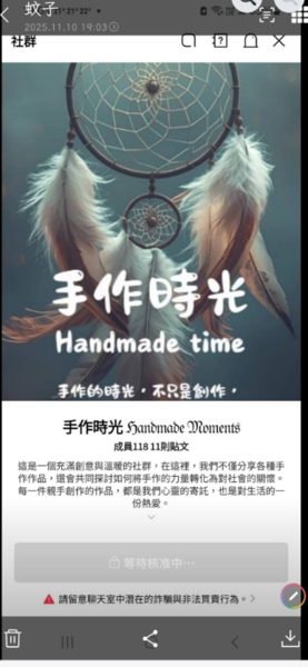 民眾通報假投資(博弈)詐騙網站「手作時光」套養殺 繳納資金不給提領【網友不會幫你賺錢、請勿聽信網友投資】