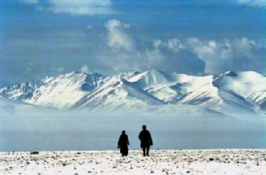 相片是在藏北那木措拍的,那兩位向雪山深處走的藏民都六十餘歲了,他們要翻過雪山後一直走到拉薩布達拉宮禮佛。聽同行的藏族記者說明後,我撲通跪在雪地上,面對他們的背影,內心充滿敬仰地按下快門。