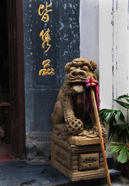 向晚時分,漫步在黃山市的街道上 ,看到這麼一幅景象:不知何人將拖把倒置倚放在石獅身上,此時此刻、此情此景,頓時與李頎的詩句「倚杖寒山暮」聯結起來,