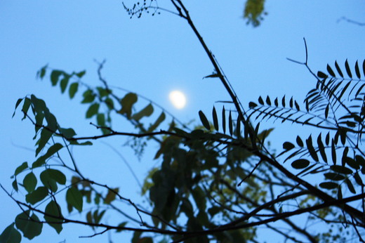 散場後,避開人群,走在林中小徑,森天大樹如鬼魅般矗立,我像四處漂泊的孤獨的靈魂,在黑夜裡流浪,卻有眾人皆睡我獨醒的清明和靜謐,抬頭望那弦月,明亮瑩透,有月光相伴,我獨行林中小徑,夜變得神秘而美好,樂音仍在耳際迴響,我竟捨不得這夜,不願歸去!