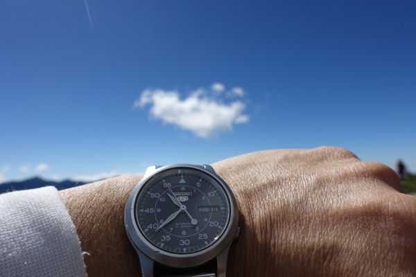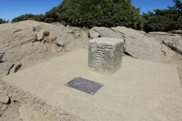 從反射板到攻頂還是花了一個鐘頭的時間,看了手錶已是十點三十分了。和摯友吉宏稍做休息吃些乾糧喝個熱開水調適一下身心的作息調整,站在三角點可以一覽南湖大山、南湖北山、合歡群峰、中央尖山等遠近群山都可盡收眼底。