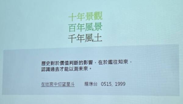 一個景觀作品要十年之久,才能與原有棲地融為一體,百年後才真正成為風景的一部分,但是融入風土則是要千年以上!試想就在當今的任何一座城市,十年間的變化會是有多大,高樓大廈一棟一棟的蓋起來,都市計畫(變更)、危老與都更、道路擴寬……,這些地貌的改變何需十年啊!這些都標誌著都市正在轉型,會帶來基礎設施、居住安全與城市景觀的實質提升。百年風景、千年風土,在我們這一代,會是天方夜譚吧!