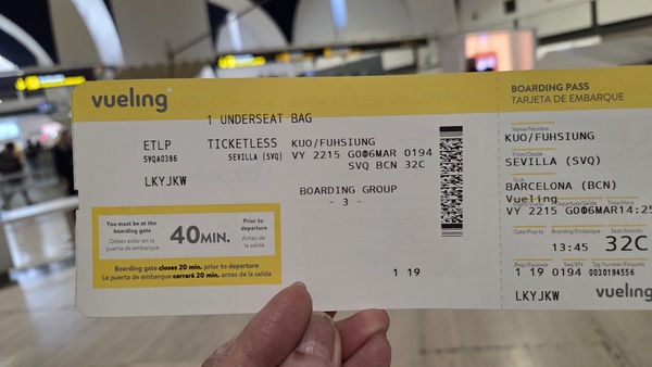 16:00機輪碰觸地面,1.5小時就到巴塞隆納了,跑道航行沒有空隆聲響,很平順的跑道,這種平穩的降落無疑是開啟巴塞隆納之旅最舒適的方式。當機輪安靜地觸碰地面時,也宣告此次旅行轉換了城市,從南方的塞維利亞到北方的巴塞隆納,也從熱情的安達魯西亞地區正式進入了充滿高第建築與藝術氣息的加泰隆尼亞。