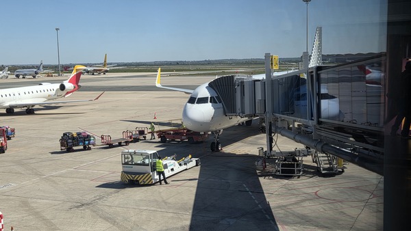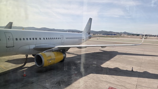 2026/03/17 西班牙之旅第七天,搭乘伏林航空國內航班,從塞維利亞前往巴塞隆納,伏林航空標誌性的鮮黃色引擎蓋在停機坪上非常顯眼,與西班牙陽光普照的意象感覺還是很搭的。這是一家總部設在巴塞隆納的西班牙廉價航空公司。14:30機輪離開地面,再見了塞維利亞。