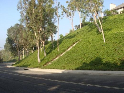 而沒有維護的山坡是一片枯黃的景象.