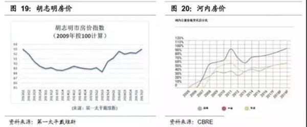 越南典型樓盤房價絕對價格水平接近2006年的中國。胡志明目前最貴的新房樓盤Centennial,位於西貢河邊,是西貢河邊唯一一個成片開發的新房樓盤,目前售價最貴在1.3萬美金左右,約 8萬人民幣。上海高端樓盤湯臣一品在2005年開盤時價格接近11萬元。