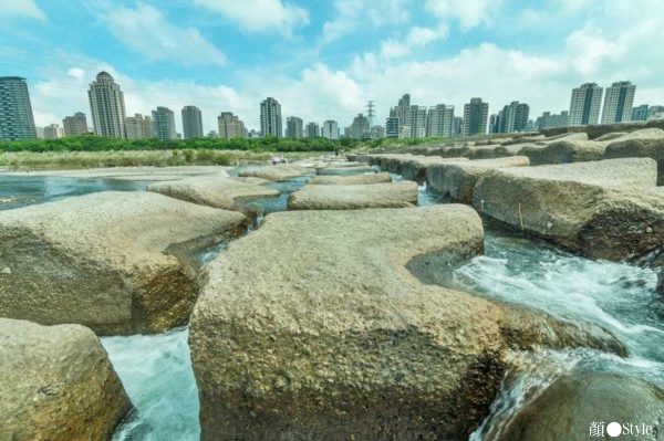 原本是攔河堰下游為了延緩河床刷深的消波塊,並非大自然的沖蝕下而誕生,但沒想到後來卻變成拍照聖地了!