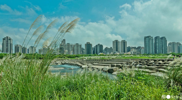 河床上的甜根子草,開得正美,此時秋天正是賞花時節。