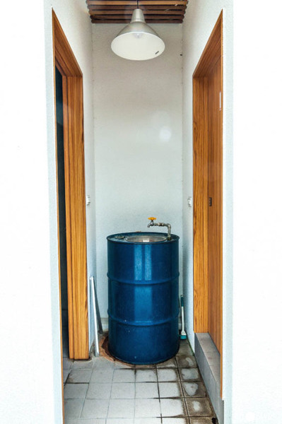 這是男廁(左)女廁(右)中間的洗手台,很酷吧!竟然用汽油桶改裝成洗手檯。
