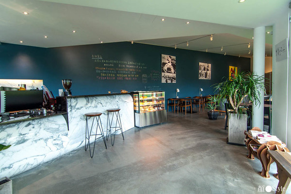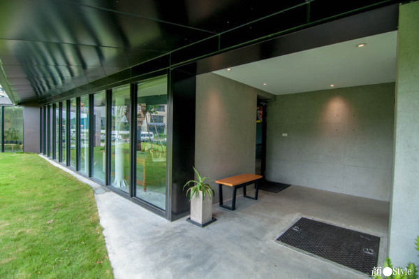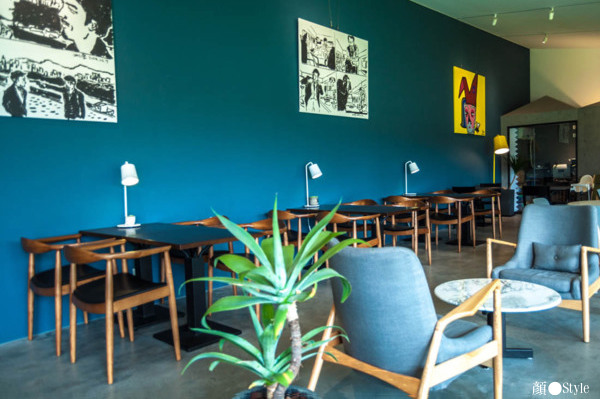 室內空間,因為三角形的最長邊都是落地玻璃,採光極佳,即使是深藍色牆面,也不覺得暗。