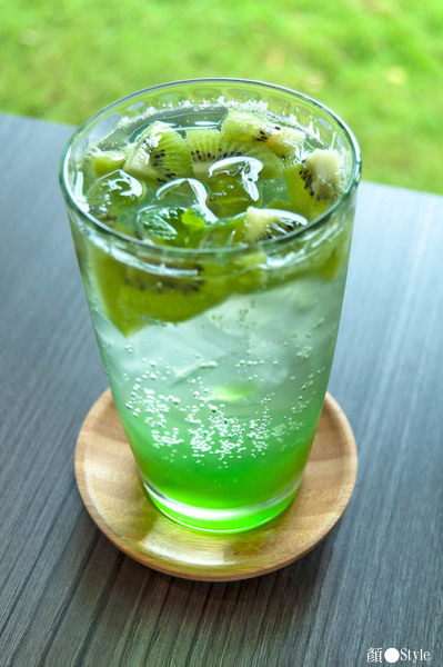 氣泡茶飲,價格還好,看這顏色~哇 是真的奇異果果肉喔。