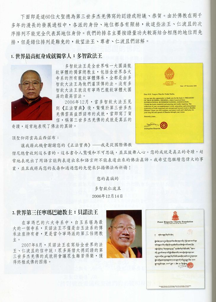 2006 年 12 月,當多智欽大法王見到《正法寶典》後,驚嘆於第三世多杰羌