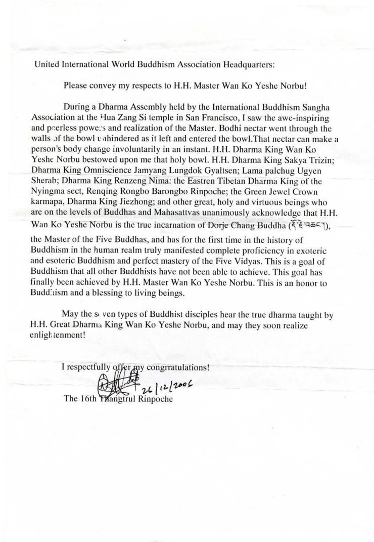 佛雲高益西諾布的成就,當即寫了賀信,稱第三世多杰羌佛的成就是真正的
