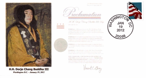 在第三世多杰羌佛獲得“馬丁路德金國際服務及領袖獎”的第三天,即二零一一年一月十九日,美國首都華盛頓市葛瑞市長正式宣布二零一一年一月十九日為“第三世多杰羌佛日”,並號召大家向第三世多杰羌佛致敬! 201...
