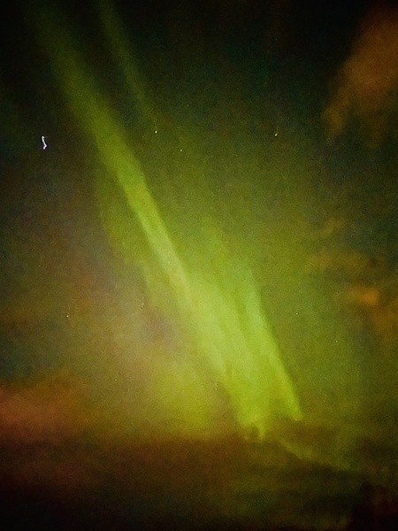 酒店是座旅遊休閒村,周遭了無人煙,還好有餐廳自助餐和餐點的選擇,價格合理。席間同桌友人已在櫃檯詢知,午夜時分有「北極光」可得觀賞,但不保證,因爲北極光的生成是偶發的,就算出現還要在天氣良好、無地面和天空的光害,也不能有雲層的遮避,換言之,看到的機會要憑運氣。