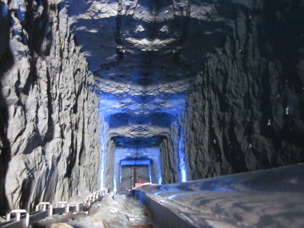隨後就去聞名遐邇的「擎天廳」,因仍似有任務,所以還有衛兵把守。進了大廳才了解這項工程的偉大,基本上是座大會堂和周邊設備,還有花崗石軍醫院,正常運作中以及其他軍事設施。大廳是多功能的,會議、簡報、放電影和娛樂表演都很適合。挑高非常高有如台北大型電影院ㄧ般,深度也是可觀,為了了解細節,我特別快跑到頂,看見一整排軍旗陳列,再下到平地已是一身大汗,整個建築真可謂鬼斧神工,壯觀無比。