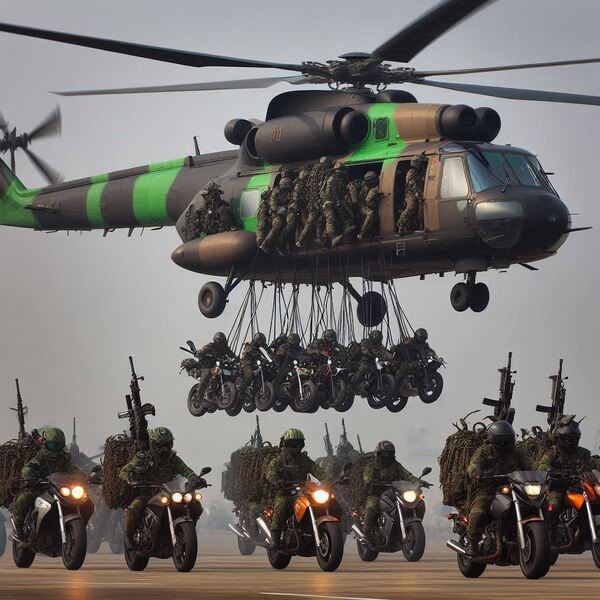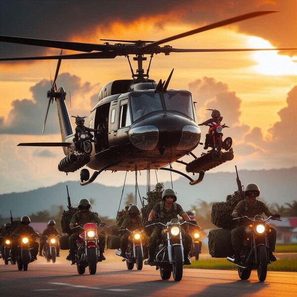 機車騎士男女青年至少幾百萬人,且都有基本駕駛、維護、保養的技術,這可是其他國家沒有的戰鬥資源。台灣地形山地偏多,平原田間路窄,戰事發生時,一旦公路橋樑被破壞,戰士搭乘卡車或「悍馬運兵車」,還沒排隊上車,省油快速的虎頭蜂機車部隊,早已一溜煙的出擊了。真可謂一秒“步兵變騎兵”。最後,分享切身痛苦的社會經驗,攻擊性機車不裝消音器,保證會有震撼效果,偵查性機車用電動的,靜音隱蔽效果好,撞到腳後跟,才會發現他的存在!(全文完)