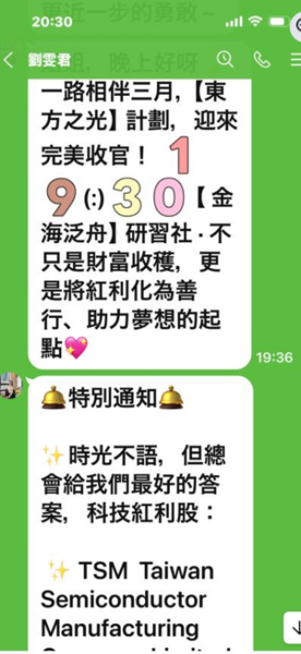 詐騙集團透過網路廣告平臺大量投放投資詐騙廣告,讓國內民眾混淆誤認,更讓政商、財經各界遭冒名之人士不堪其擾,多次公開聲明並未開設任何LINE投資群組,提醒民眾切勿上當受騙。常見的詐騙廣告內文關鍵字如「AI妖股」、「最強黑馬股」、「飆股特別通知」、「免費贈書或公益送書」、「限時免費領取千萬不要錯過」以及宣稱「公開唯一官方LINE帳號」等,請民眾提高警覺,切勿輕信。 -