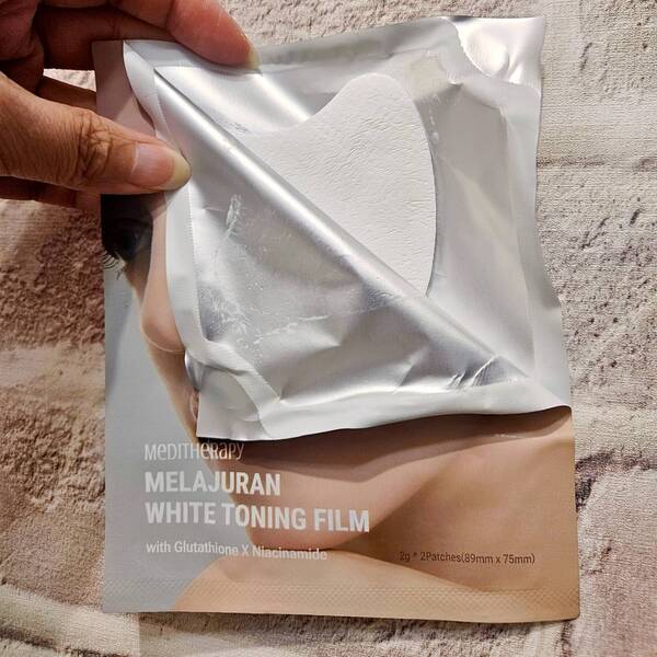 撕下亮白面片上塑膠片緊貼臉部想改善的部位