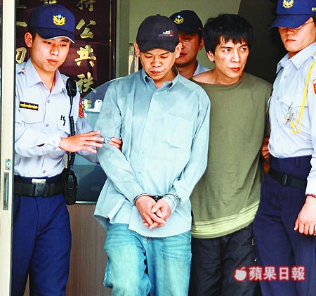 假冒警察行搶的呂東昇(左二)及吳梓豪(右二)兩人落網,但另有兩嫌在逃。談曉泉攝