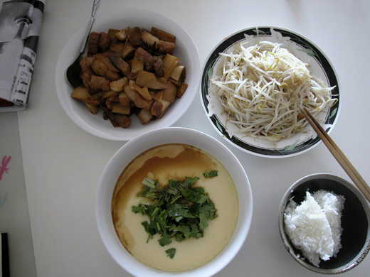 週末的午餐是我最愛的家鄉味 紅燒肉 醋溜豆芽 蒸水蛋 這些我在家鄉時不會做的料理 因為想念而鍛鍊的好廚藝 我要感謝失去 因為失去所以我得到更多 只是紅燒肉用的是毛家紅燒肉配方 更簡便 鎮江醋比工研醋更...