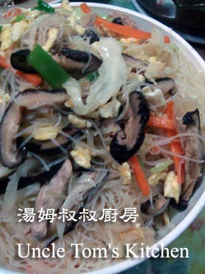 今天要介紹炒米粉,湯姆叔叔介紹過芋頭米粉湯、南瓜米粉、蝦仁米粉,今天要介紹的是[什錦米粉],當然所謂[什錦],就是加了很多配料集大成!依個人口味可以添加各種不同的食材,但是過程一定是米粉先川燙熟備用,把配料炒熟後加入湯汁,再將米粉放入鍋中攪拌吸附湯汁,雖然過程繁複,但只要掌握這些要件,還有搭配豬油或油蔥酥,自然會炒出一道料多味美的什錦米粉囉!